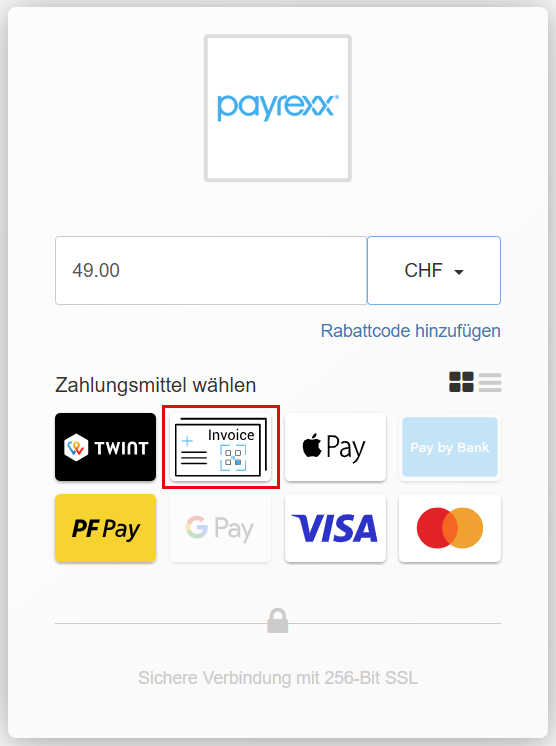 Kauf auf Rechnung gehört zu [Payrexx Pay](https://docs.payrexx.com/merchant/bezahldienste/payrexx-pay) und steht daher nur Händlern aus der :flag\_ch: Schweiz zur Verfügung: