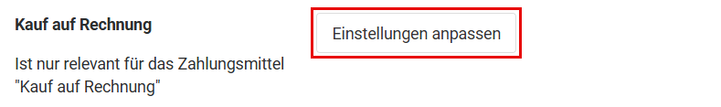* Scrolle etwas nach unten und klicke neben "Kauf auf Rechnung" auf "Einstellungen anpassen":
