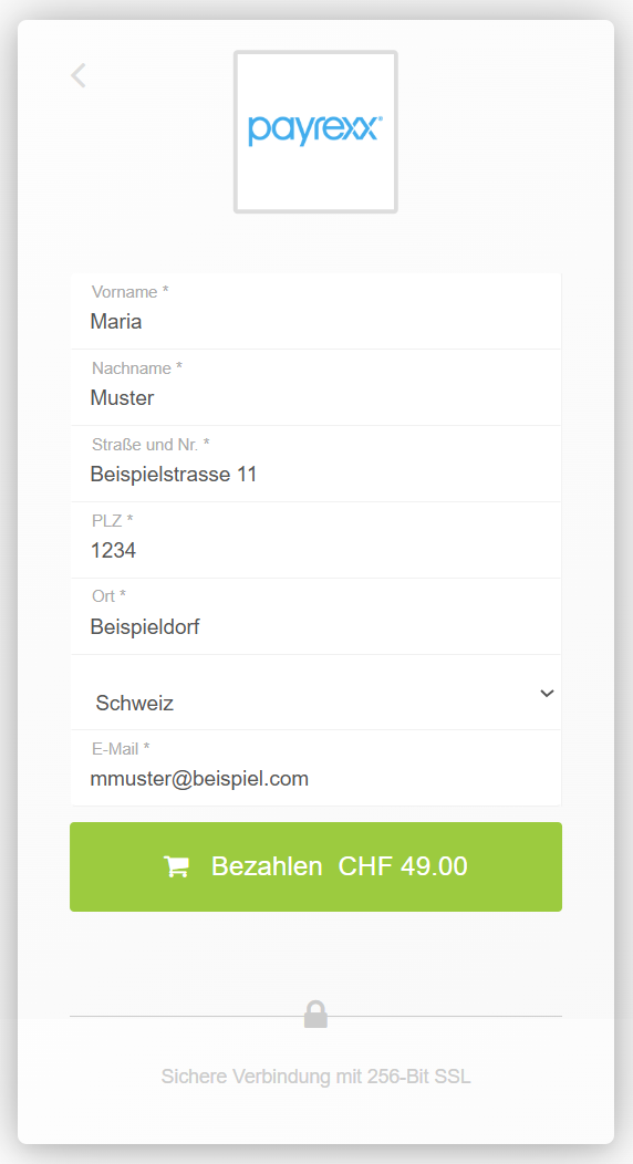 * Der Kunde erfasst seine Kontaktdaten und klickt auf "Bezahlen":