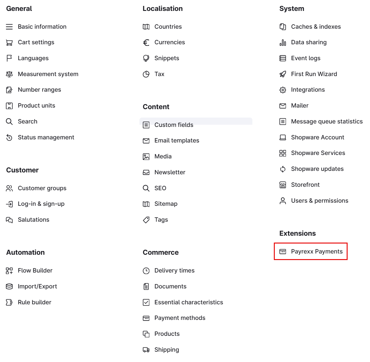Follow the instructions below to integrate Payrexx into Shopware 6. If you are still using Shopware 5, please refer to the corresponding [guide](https://docs.payrexx.com/merchant/english/integration/e-commerce/shopware-5).