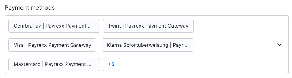 * Click in the empty area below "Payment methods" and select any number of payment methods from the list: