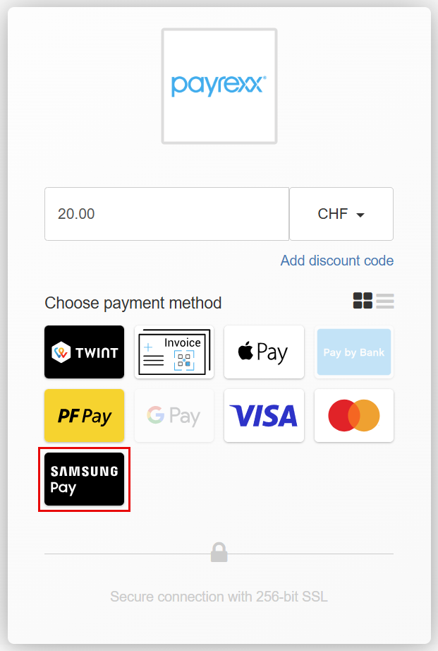 To use Samsung Pay within Payrexx Pay, please follow these steps: