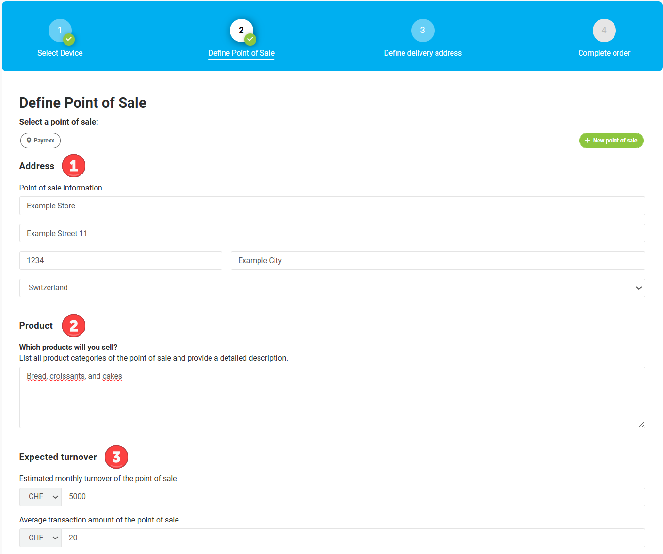 Enter the required information for the point of sale: