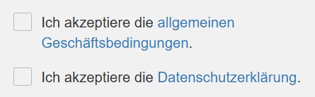 2. Die Inhalte der allgemeinen Geschäftsbedingungen und der Datenschutzerklärung kannst Du unter [Einstellungen > Rechtliches](https://docs.payrexx.com/merchant/payrexx-administration/einstellungen/rechtliches) festlegen. Wenn Du die Felder "AGB" und "Datenschutzerklärung" aktivierst, müssen diese durch den Kunden akzeptiert werden. &#x20;