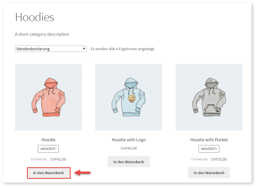 Der Kunde wählt ein Produkt aus und legt es in den Warenkorb: