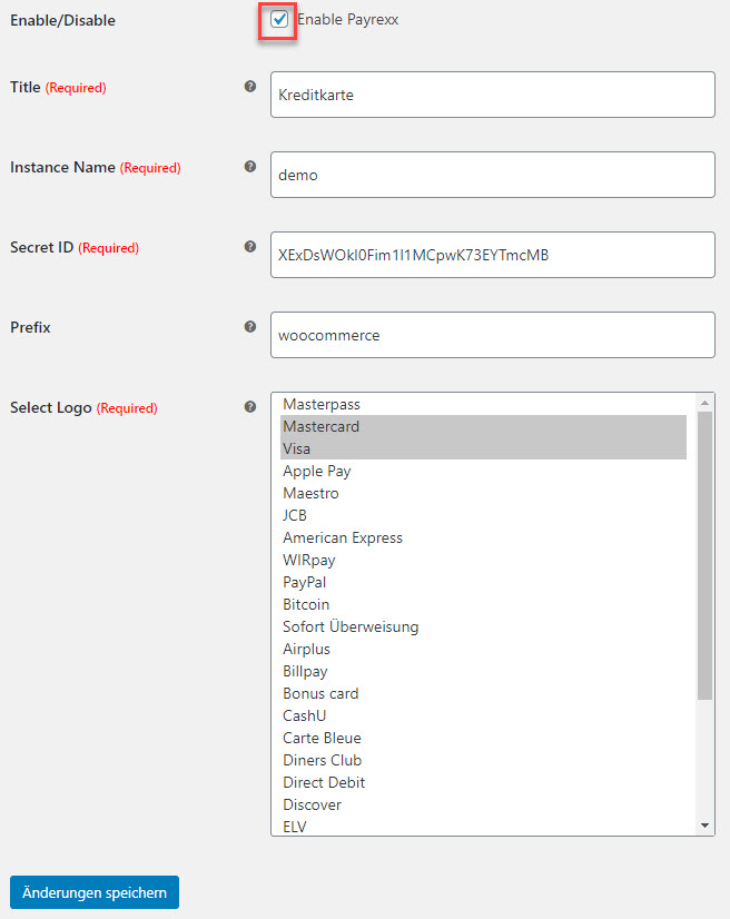 Prefix: Dieses Feld muss nur ausgefüllt werden, wenn Du bei Payrexx ein Plattform-Kunde bist und mehrere Shops in einem Payrexx-Konto verwaltest. Jedes Shop-Plugin übermittelt als Referenz eine Bestellungs-ID an Payrexx. Der Präfix dieser Referenz sorgt dafür, dass Payrexx weiss, um welchen Shop es geht.